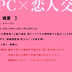 形式:クロースド 人数:4PL/KPC+3PL/1PL2PC×2 2PLの探索者×2組の場合、同じシナリオの探索者でも遊ぶことも可能です。 推奨PC:継続探索者/恋人もしくは両片想い あると良い:嫉妬心 注意事項:確定で恋人の精神が交換され、見た目が恋人中身が別人の相手と手錠で繋がれます。そして、強制的にスキンシップをとることになります。
